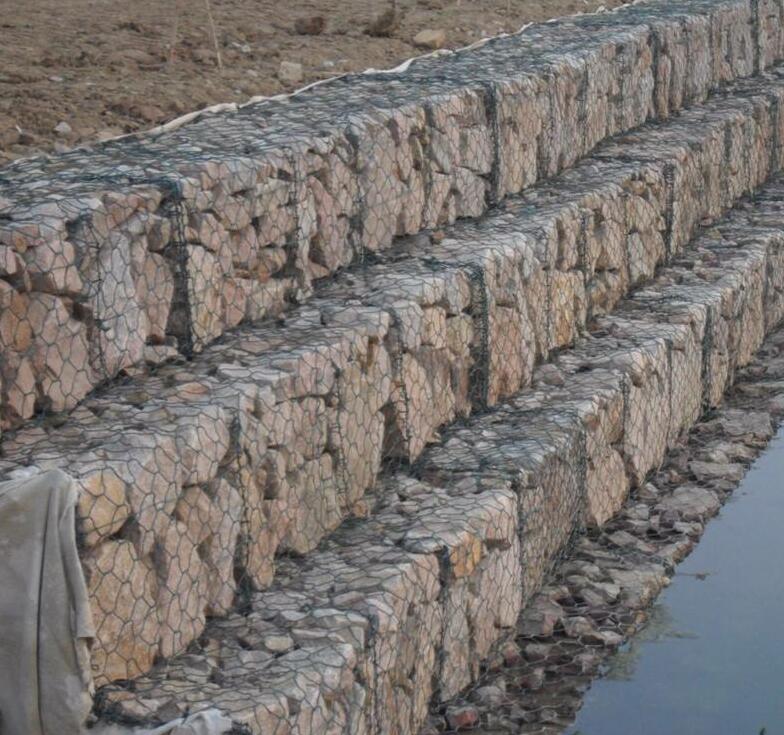 疊砌石籠網又叫石籠網箱,格賓網箱,鉛絲石籠網,固賓籠綠濱墊. 石籠網主要用于河道整治工程,河道基礎加固工程,抗沖刷工程,防洪救災等水利工程和土木工程. 石籠網優勢: 1. 良好的柔性結構,可以承受大范圍的變形而仍不塌陷. 2. 生態環保,在工程施工好后,用土蓋好,在表面撒上一層草籽,等明年會形成一層天然的綠色草坪,并且省去了綠化的費用. 3. .施工簡便,無需特殊的技術,只要將籠子綁扎好,再在里面裝好石頭即可. 4. 防腐蝕能力強,在PH值6.5-7的時候可以使用70年不生銹 5. 運輸方便,運輸時可將石籠網箱像紙箱子一樣折疊運輸. 6. 石籠網箱規格: 石籠網箱尺寸:2m*1m*1m,3m*1m*1m,4m*1m*1m,5m*1m*1m,4m*2m*1m..........(可加工定做) 7. 石籠網網孔尺寸:60mm*80mm,80mm*100mm,100mm*120mm,120mm*150mm,130mm*160mm,150mm*150mm,180mm*180mm,200mm*200mm 8. 石籠網絲徑:絲徑分為網絲直徑,邊絲直徑,綁扎絲直徑 9. 石籠網網絲直徑:2.0mm-4.0mm 10. 石籠網邊絲直徑:邊絲直徑一般大于網絲直徑0.5mm-1mm 11. 石籠網綁絲直徑:2.0mm-2.2mm