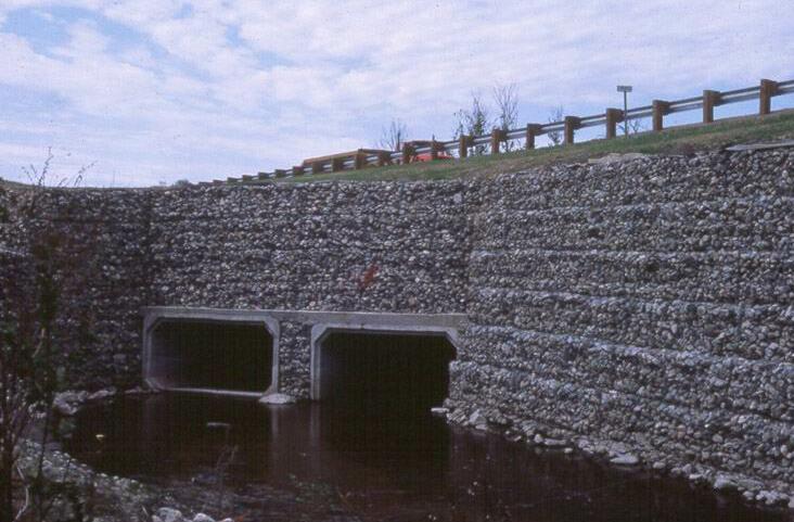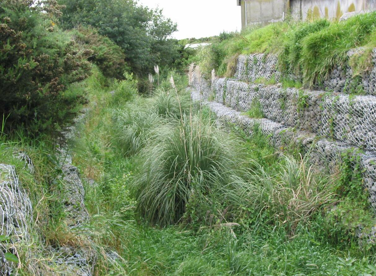 積,在降雨條件下渣場(chǎng)內(nèi)部會(huì)聚存較多的雨水,若泄水通道不暢而存在較大的壓力造成擋墻破壞.生態(tài)格賓擋墻由于具有一定的孔隙率(20%-30%),雨水可以自由滲出,可以免去其他類型擋墻排水孔易被堵塞的麻煩,在不設(shè)置泄水孔或泄水孔遭泥沙堵塞的情況下不造成墻體破壞生態(tài)格賓擋墻是一種生態(tài)防護(hù)構(gòu)造,其根柢作業(yè)單元為填石網(wǎng)箱,植物能夠運(yùn)用格賓內(nèi)填石空位成長(zhǎng),也能夠通過預(yù)埋藤蔓枝條等抵達(dá)美化作用,與天然和諧一同.對(duì)比于其他支擋構(gòu)造,格賓擋墻有其明顯的利益:透排水性超卓,坡面規(guī)整、俊美;柔性構(gòu)造,貼地性佳,承載力需求低;耐久性好,高鍍鋅抗腐蝕;機(jī)械編織成網(wǎng),出產(chǎn)活絡(luò),運(yùn)送儲(chǔ)存便利,不需求十分規(guī)則的石料,能夠因地制宜.生態(tài)格賓擋墻已被廣泛運(yùn)用,成為國(guó)內(nèi)外生態(tài)工程中的一個(gè)重要構(gòu)成.