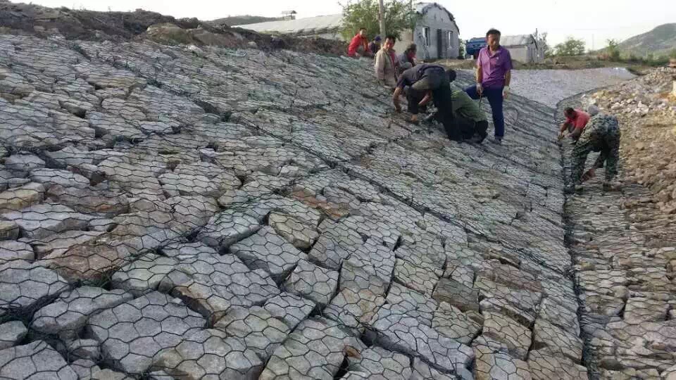 熱鍍鋅石籠格賓是由抗腐耐磨高強的低碳鍍鋅鋼絲編織成雙絞六邊形的金屬網(wǎng)箱,根據(jù)工程設計要求組裝并裝入塊石等填充料的一項工程技術,這種蜂巢型結構,最能符合力學的原理,是一個同性質的巨大塊狀結構.體,具有承受張力的功能,并可吸收未知的壓力.這項技術能較好地實現(xiàn)工程結構與生態(tài)環(huán)境的有機結合,為保護河床,治理滑坡,防治泥石流災害,防止落石兼顧環(huán)境保護的首選結構形式