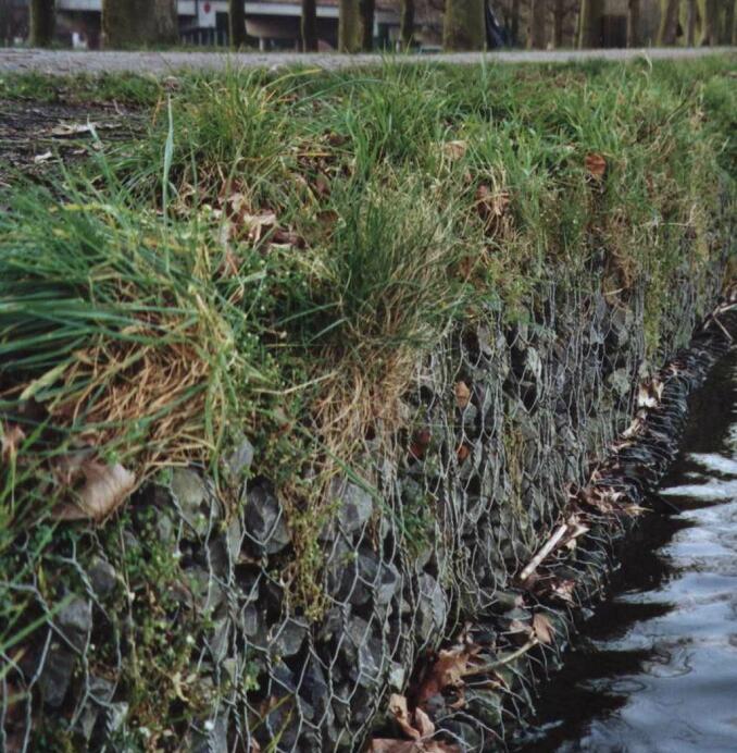 石籠網(wǎng)石頭縫隙間的淤泥有利于植物生產(chǎn),可與周圍自然環(huán)境熔為一體.
