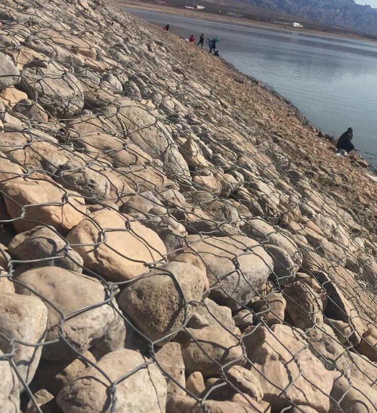 使用鍍鋅石籠格賓墊護坡具有施工快,當基礎開挖完成后石籠建筑物即可一次建成.施工中還能避免在河道和海灘建筑圍堰,減少排水費用.在無水地區施工,經過鋪網、填石和連接加固即可完成.在江河沿海地區進行水下施工時,可事先裝好格賓石籠護坡,然后吊裝安放就位,或者用船運至預定地點拋石就位截流工程可采用此法. 本產品易維護由于鍍鋅石籠格賓墊在順長方向都加設隔板網,這些隔板網把鍍鋅石籠格賓墊分隔成一個個獨立的立方體.故當某個立方體因網格破壞而引起石塊松動,以致被水流沖走時,只是有限的、局部的.又因雙向交織的鐵絲網的局部損壞不易擴展,故維修起來十分簡便.僅須把局部損壞的網格修鋪好重新填滿石料即可繼續運用.