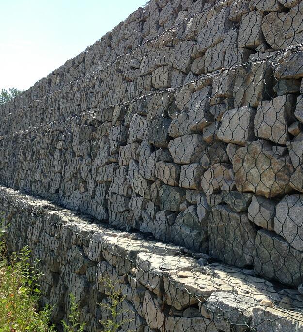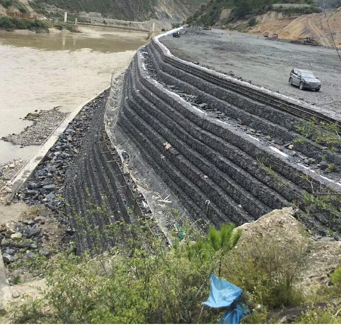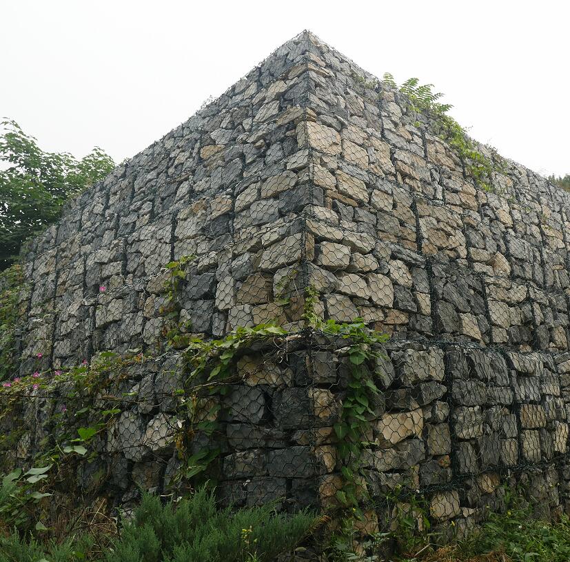 積,在降雨條件下渣場內部會聚存較多的雨水,若泄水通道不暢而存在較大的壓力造成擋墻破壞.生態格賓擋墻由于具有一定的孔隙率(20%-30%),雨水可以自由滲出,可以免去其他類型擋墻排水孔易被堵塞的麻煩,在不設置泄水孔或泄水孔遭泥沙堵塞的情況下不造成墻體破壞生態格賓擋墻是一種生態防護構造,其根柢作業單元為填石網箱,植物能夠運用格賓內填石空位成長,也能夠通過預埋藤蔓枝條等抵達美化作用,與天然和諧一同.對比于其他支擋構造,格賓擋墻有其明顯的利益:透排水性超卓,坡面規整、俊美;柔性構造,貼地性佳,承載力需求低;耐久性好,高鍍鋅抗腐蝕;機械編織成網,出產活絡,運送儲存便利,不需求十分規則的石料,能夠因地制宜.生態格賓擋墻已被廣泛運用,成為國內外生態工程中的一個重要構成.