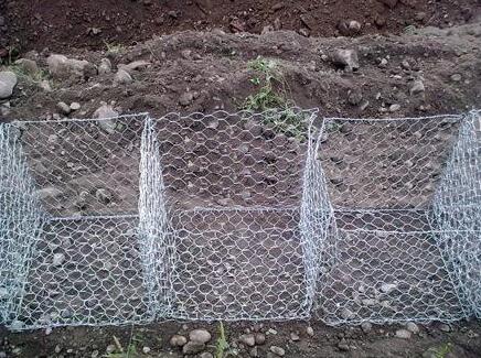 (5)施工快捷:格賓石籠護(hù)底網(wǎng)可按設(shè)計(jì)意圖,工廠化生產(chǎn)制作出半成品,施工現(xiàn)場(chǎng)按設(shè)計(jì)圖進(jìn)行組裝定型,再鋪設(shè)在整理好的土坡上或開挖好的基坑上,鋪成護(hù)坡或砌壘成箱籠擋土墻,灌進(jìn)填充料,加上網(wǎng)蓋即成.操作簡(jiǎn)便、受氣候干擾小,且適宜于機(jī)械操作,既可保證施工質(zhì)量又可加快工程進(jìn)度.